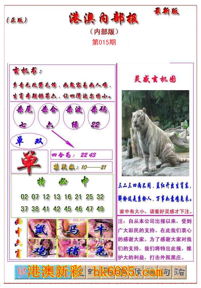 015期: ⑦肖 兔鼠猴马猪鸡虎 ????中