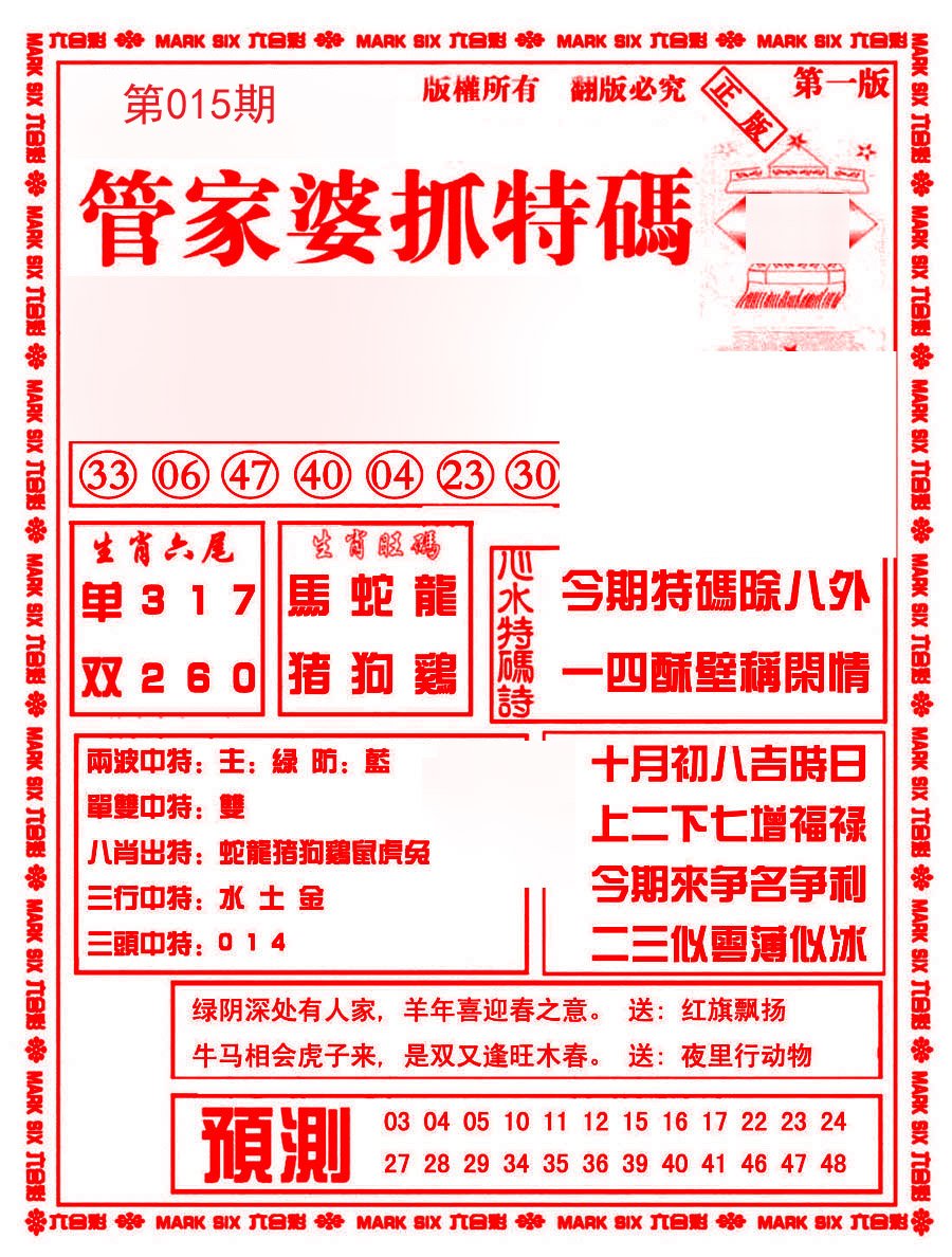 015期: ⑧肖 兔鼠猴马猪鸡虎羊 ????中